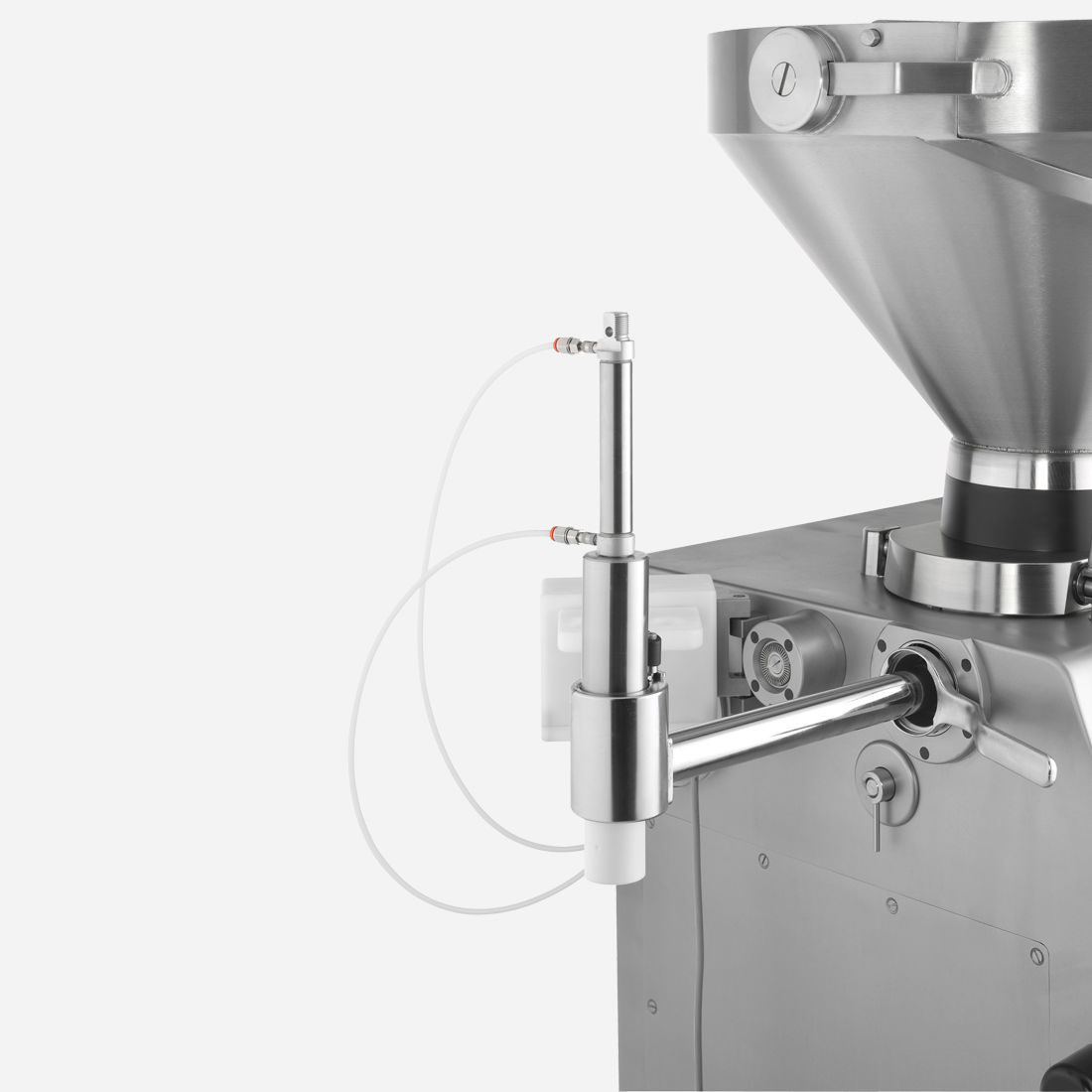 Easy integration: The head easily connects to the syringe outlet and is pneumatically operated for high performance.