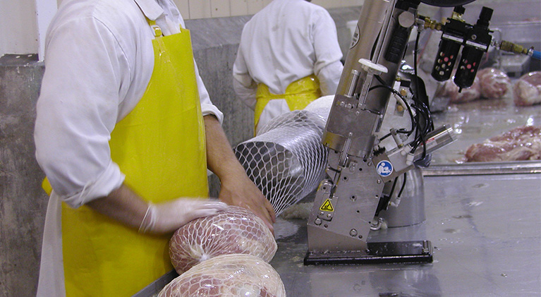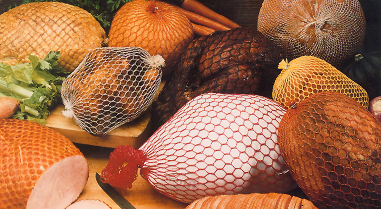 Handles for easy carrying of meat products in nets.