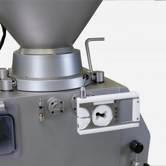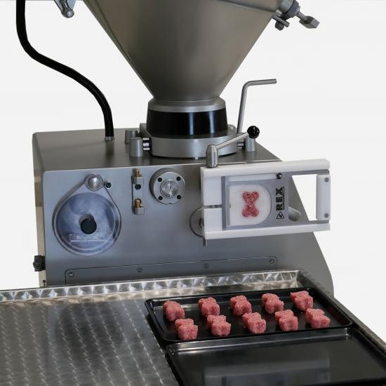 The mechanical device MBF 80, which is installed on the REX vacuum spatulas, perfectly copes with the task of forming various semi-finished products: cutlets, kebabs, patties, vegetarian food, cookies and crackers, as well as pet food.