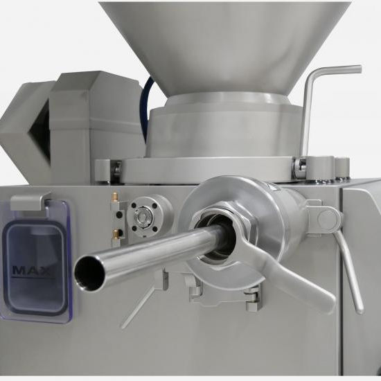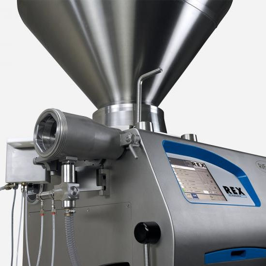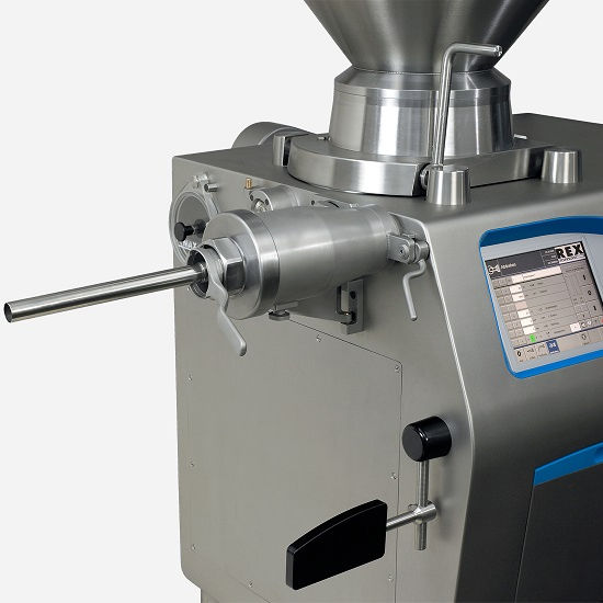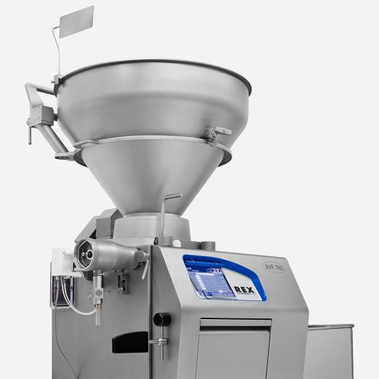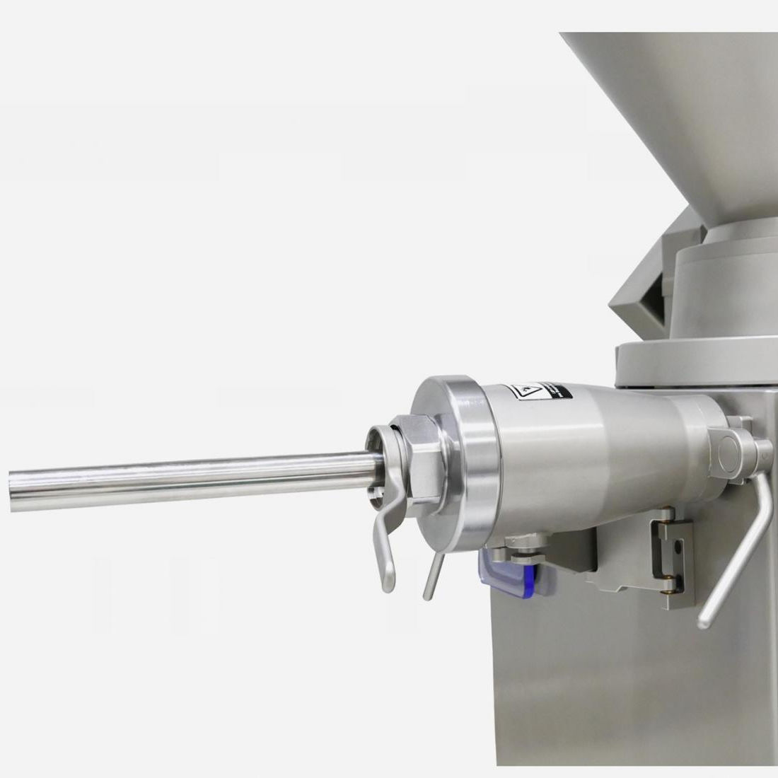 The pipette is available on REX syringes of the RVF 700 and RVF 911 series. The use of the shredder directly during filling in a single work step significantly shortens the technological process. The passage of minced meat through the end grid of the shaker ensures uniform grain size of the final product. The diameter of the grate is 130 mm, the cutting tool can be equipped with: 3 or 5 parts. The independent servo drive and the functions of the whisker attachment are controlled on the touch screen of the syringe control unit, and depending on the application, you can set the cutting speeds to your liking. As an option, the MS 3-1 can be used in combination with a pneumatic separator to separate veins and bone residue. The opening time is set in the program on the syringe control unit. The MS 3-1 can be combined with other REX attachments.