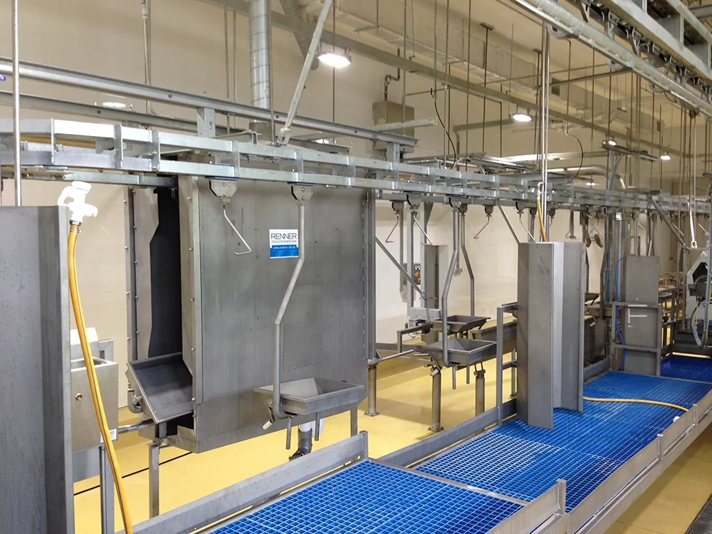 Regardless of whether it is industrial slaughterhouses and deboning plants or small meat processing plants with limited space: RENNER Schlachthaustechnik offers everything you could possibly need for slaughtering pigs. From the planning stage to the slaughterhouse, we have designed and implemented a slaughter line that is completely tailor-made for you