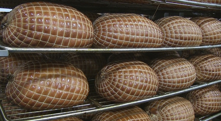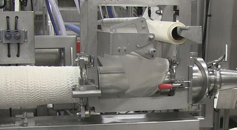 The RS4204CM (Collagen-Model) is equipped to pack liquid pork and poultry products in collagen film and elastic mesh.