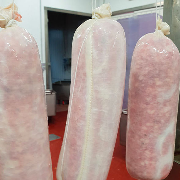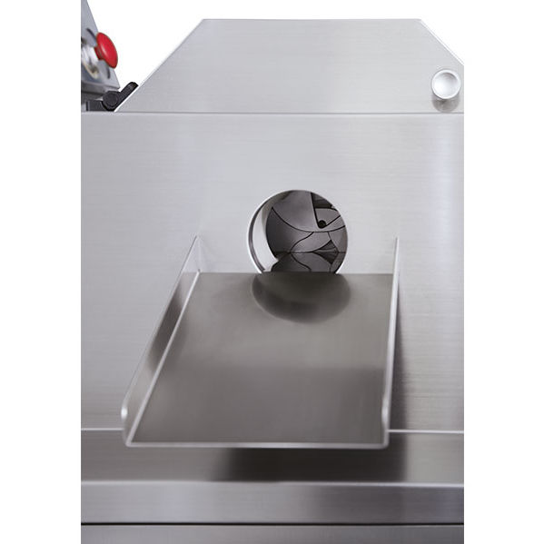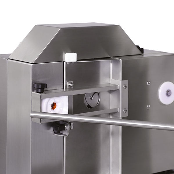 It is synchronizable to all the continuous vacuum fillers on the market. This is suitable for small or medium productions of limited tied products. In the Italian market, for example, it is very requested for small productions. In the East-Europe countries it is also used for large productions, since it is suitable to tie Knackwuerst. The maximum caliber is 85 mm, and it is equipped with a pneumatic brake adjustable during the different phases of production. The spacing between tied products is semi-automatic.