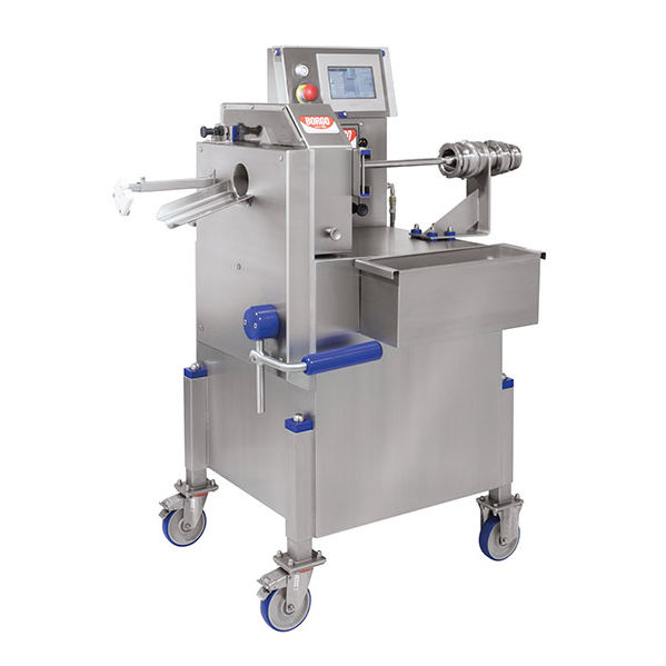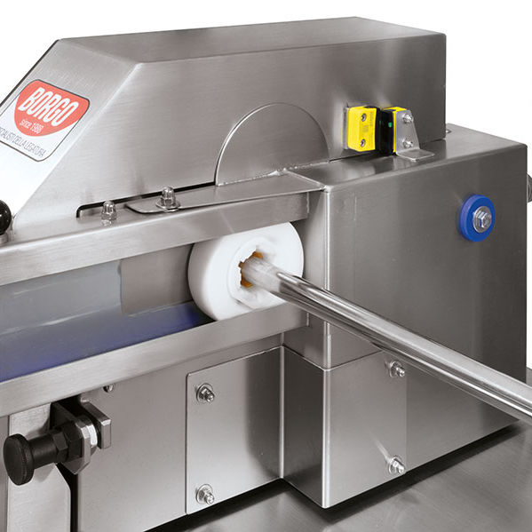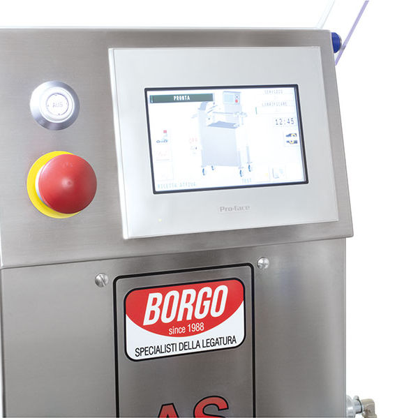 Tying machine AS 50 equipped with mechanical brake , or, as optional with the pneumatic brake which is infinitely adjustable. Moreover the brake sliding system permits a dynamic work. Single or double (optional) tying mode, suitable to produce cured meats to be seasoned or for cutting between products. This model is the best option to tie products up to caliber 50 mm, tied continuously or separated. Automatic tying for product with single tying and semi-automatic for separated products to season or to cut. It is projected to be synchronized with all the continuous vacuum fillers on the international market.t ties by fixed weight, the operator needs to determine it on the filler, otherwise it is possible to tie by time on tying machines coloured 7 Touch-Screen control panel.