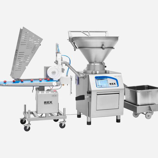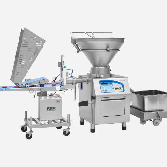 The new hamburger shaper is the optimal machine-based solution for producing hamburgers using the low-pressure process. The pneumatic form cutter cuts the portions. The portions are then pressed into perfect home-made burgers via the form belt with optimal dimensional stability. The water spraying unit prevents the product sticking to the blade or conveyor belts. An optional imprint roller can be mounted to the end of the conveyor belt to structure the burger surface.