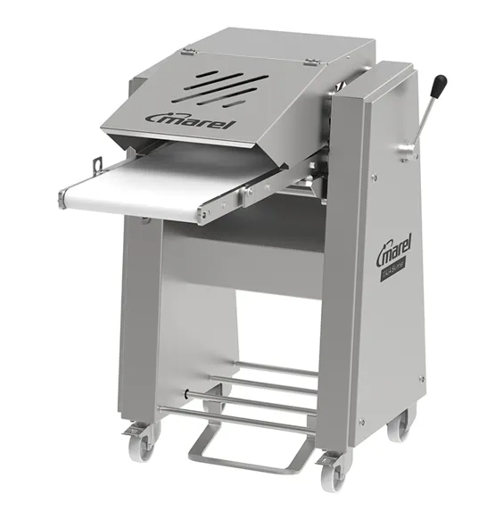 Подавальний конвеєр дає змогу автоматично заощаджувати електроенергію та час, а також абсолютно безпечно знімати шкірку з плоских вирізок, отже, навіть невеликі бійні та м’ясні крамниці можуть забезпечити відповідність вимогам безпеки харчових продуктів ЄС. Круглі вирізки можна обробляти вручну в режимі з відкритим верхом (установка робочого столу без інструментів).