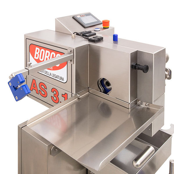 Простота і практичність роблять цю перев’язувальну машину ідеальною для малих та середніх підприємств. Універсальність – справжня сильна сторона перев’язувальної машини AS 3.1. Дозволяє перев’язувати ковбаси з фіксованою вагою, визначаючи її за допомогою пакувальної машини або за часом з панелі управління перев’язувальної машини, швидкість виробництва залежить від ваги виробу і встановленої швидкості.
