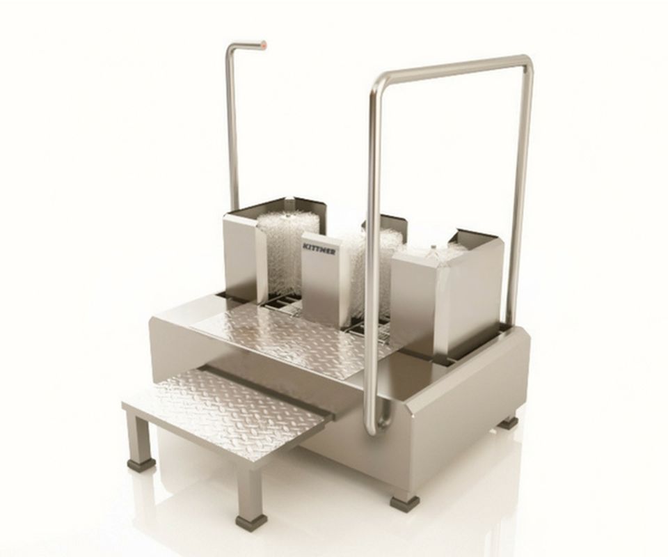 З трьома обертовими вертикальними щітками для черевика і ще двома обертовими горизонтальними щітками для підошви. Кнопка, інтегрована в ручку, та інжектор контролюють суміш води та миючого засобу, що розпилюється на черевик. Кількість засобу для чищення можна регулювати за допомогою всмоктувальних клапанів різного розміру. Корпус машини повністю виготовлений з нержавіючої сталі, матеріал № 1.4301. Нержавіюча сталь, матеріал № 1.4301. Вимоги та норми ЄС і USDA.