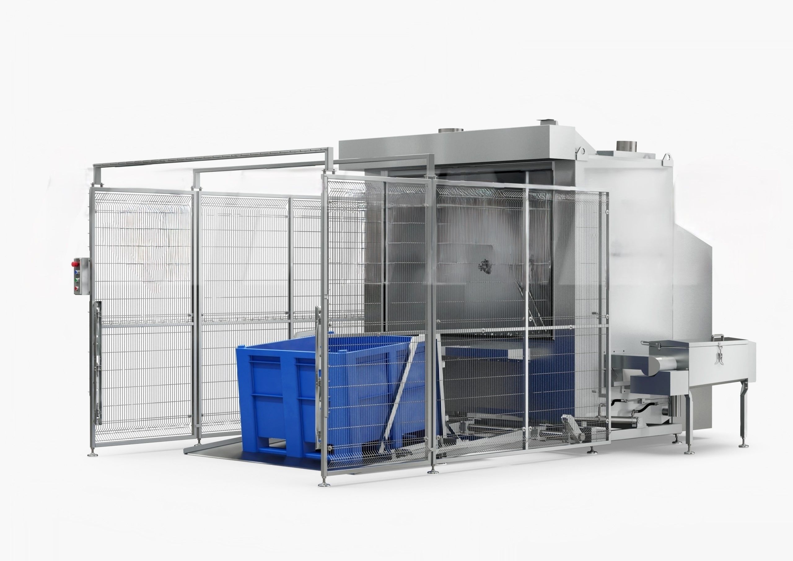 Промислова мийка з електричним підігрівом для 2×200/300л Buggy або Big Box. Управління та відображення ПЛК Siemens. Ліва електрична шафа. Регульована тривалість циклу відповідно до рівня забруднення. Фільтр з ситовим ящиком затримує грубі забруднення і довше зберігає воду в належних умовах. Дверцята з гідравлічним приводом служать як для завантаження візка, так і для закриття зони миття. Витяжка для відведення пари для монтажу над дверцятами машини. Вільний контакт для дозуючого насоса. Захисна огорожа. Барабанний фільтр. Світлова завіса, категорія захисту 4. Корпус з нержавіючої сталі, матеріал EN 1.4301 / AISI 304. Машина відповідає високим вимогам CE, а також нормам ЄС і USDA.