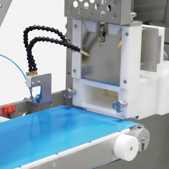 Пневматичний пристрій різання встановлено на транспортері з плавним регулюванням швидкості стрічки і передбачає роботу зі змінними формувальними насадками.